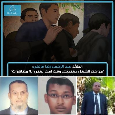 فيما وثقت مؤسسة "بلادي جزيرة الإنسانية" ما يحدث من انتهاكات ضد عبد الرحمن رضا فرغلي، من محافظة السويس، والذي تم اعتقاله مطلع يناير 2020، وهو الذي لم يكمل 16 عاما وقت القبض عليه دون جريمة.