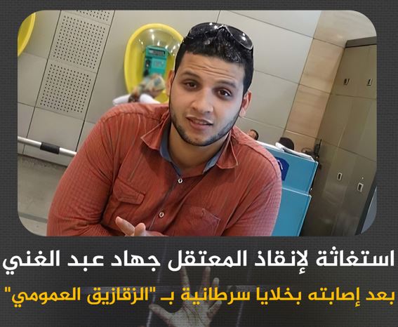 أطلقت أسرة المعتقل جهاد عبد الغني، القابع بسجن الزقازيق العمومي منذ سبتمبر 2015، استغاثة لكل من يهمه الأمر، بالتدخل لإنقاذ حياته والسماح بخروجه لإجراء الجراحة المقررة له بعد إصابته بخلايا سرطانية داخل محبسه، وتعنت إدارة السجن في السماح بخروجه بما يهدد سلامة حياته.