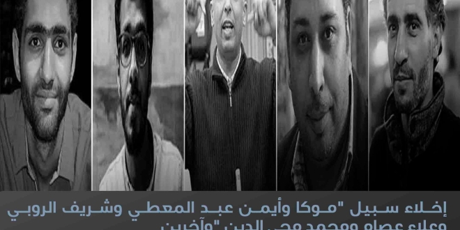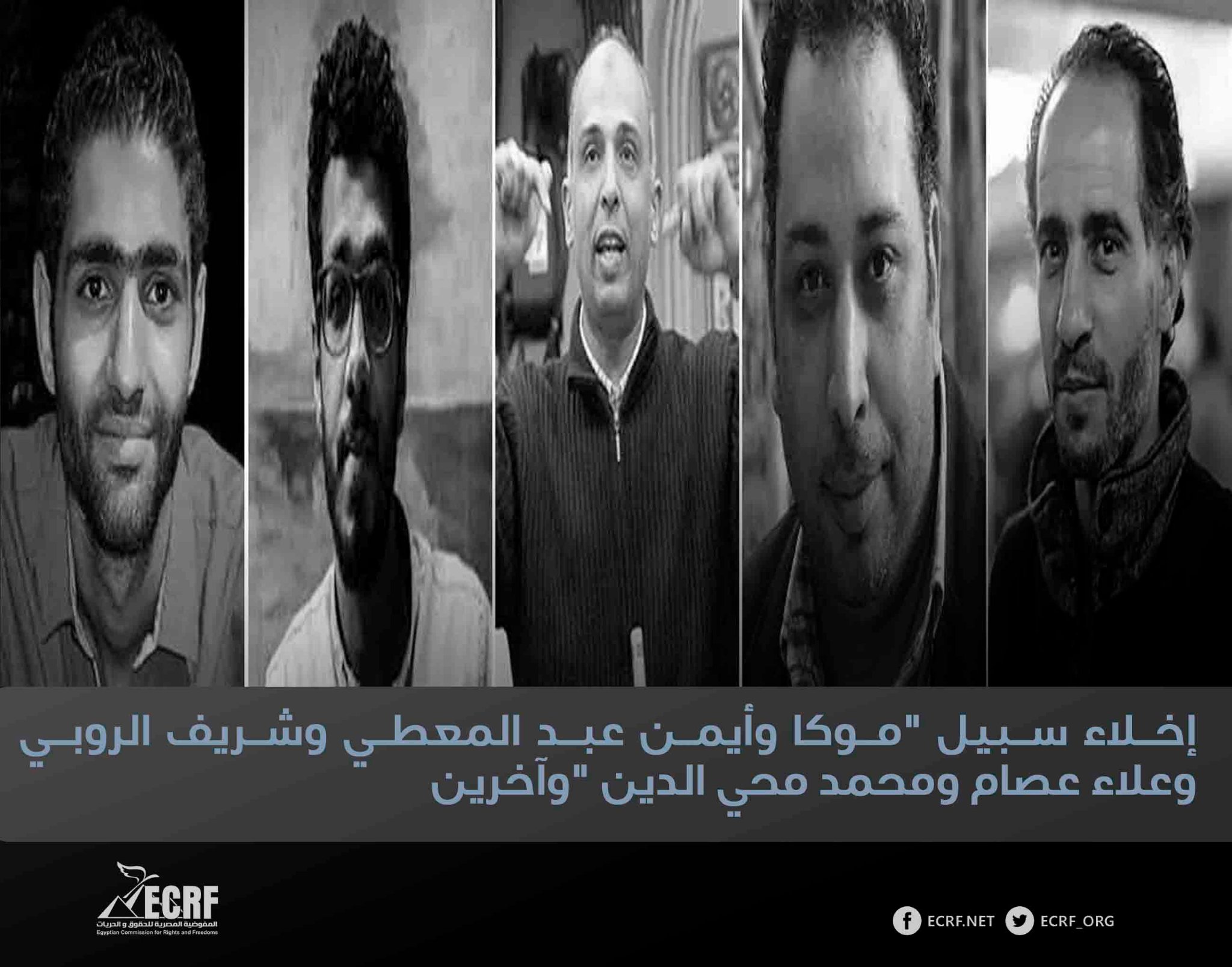 وبحسب المفوضية المصرية أيضا قررت نيابة أمن الانقلاب إخلاء سبيل عبد الرحمن طارق الشهير بـ"موكا" والمهندس محمد محي الدين، ومحمد وليد وشريف الروبي وأيمن عبد المعطي ، علاء عصام،محمد رضا جمعة، حسين السباك "