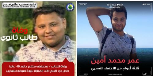 رصدت الشبكة المصرية لحقوق الإنسان ، وفاة طالب الثانوي " مصطفى منتصر حامد محمد البيجرمي" الشهير بديشة 19 عاما داخل حجز قسم المنتزه 3 نتيجة تعرضه للتعذيب المميت .