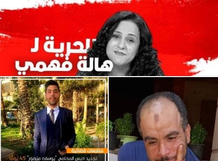 كما جددت نيابة أمن الانقلاب العليا حبس الإعلامية "هالة فهمي" لمدة 15 يوما، على ذمة القضية رقم 441 لسنة 2022 ، للمرة الثامنة منذ القبض عليها في 24 إبريل الماضي ، بزعم الانضمام إلى جماعة إرهابية، والتحريض على ارتكاب جريمة، ونشر أخبار كاذبة بالداخل والخارج.