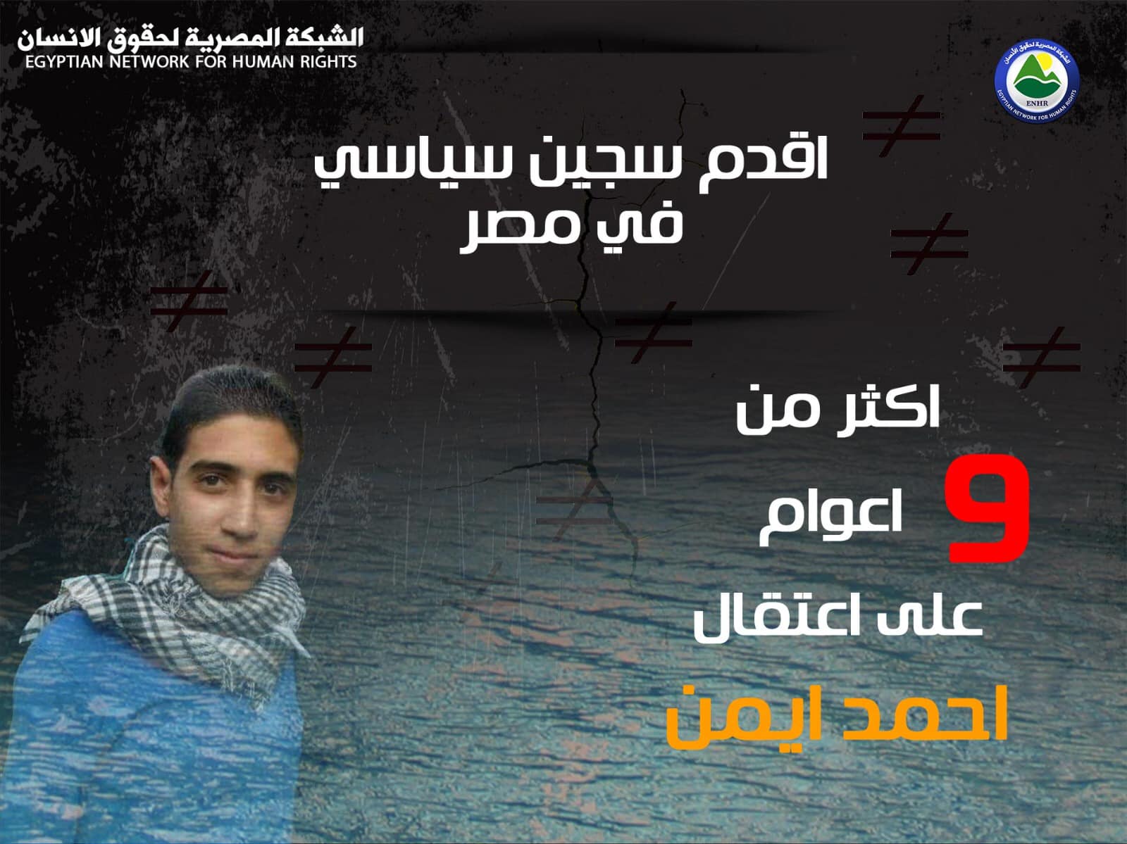 طالبت "الشبكة المصرية لحقوق الإنسان" بإعادة النظر في قضية الشاب "أحمد أيمن" أقدم سجين سياسي في مصر، ومنحه حقوقه بعد سنوات من الحبس وسلب للحرية، وإخلاء سبيله لإنهاء معاناته التي امتدت لأكثر من تسع سنوات.