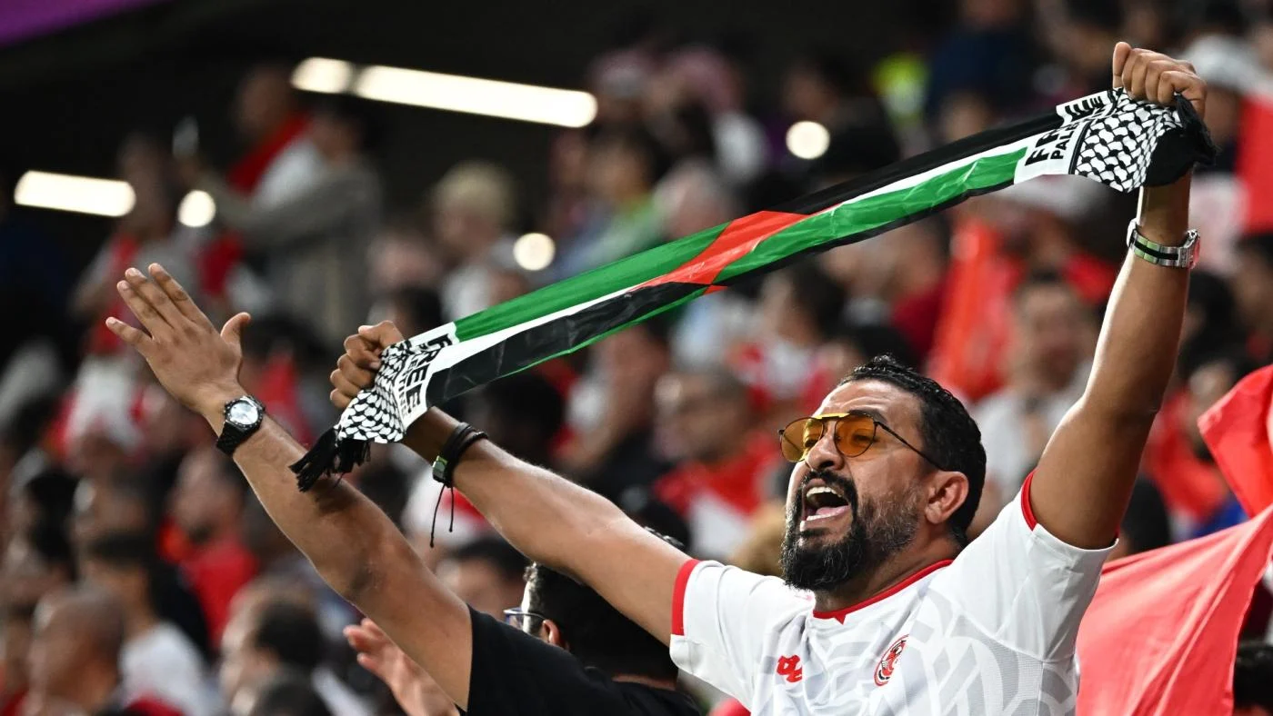 وأضاف الكاتب أنه خلال الدقيقة 48 من المباراة بين تونس وأستراليا في كأس العالم في قطر يوم السبت الماضي، رفع المشجعون التونسيون علما ضخما يحمل عبارة "فلسطين حرة" وفعل المشجعون المغاربة الشيء نفسه في اليوم التالي خلال مباراة فريقهم ضد بلجيكا.