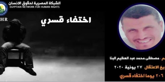 ووثقت "الشبكة المصرية لحقوق الإنسان" استمرار جريمة إخفاء المقاول مصطفى محمد عبد العظيم البنا، 49 عاما، منذ اعتقاله من منزله بقرية حوض ثابت ميت حلفا التابعة لمحافظة القليوبية، يوم السبت الموافق 27/6/2020، واقتياده إلى جهة مجهولة حتى الآن.