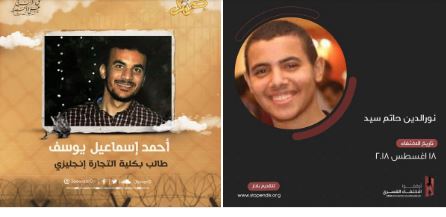 إلى ذلك تواصل قوات الانقلاب بالجيزة جريمة الإخفاء القسري للشاب “نورالدين حاتم سيد سعيد إبراهيم الخطيب” البالغ من العمر  20 عاما، حيث تم اعتقاله وشقيقه عمر البالغ 17 عاما من مسكنهما بمنطقة فيصل بالجيزة فجر يوم 18 أغسطس 2018 ونقلهما إلى مقر الأمن الوطني بالشيخ زايد بمدينة  6أكتوبر .