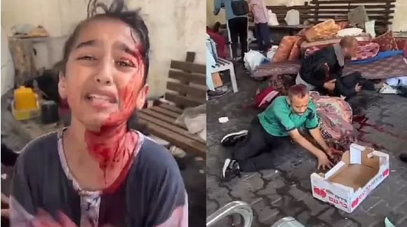 وقصف جيش الاحتلال، مستشفى الشفاء بخمس غارات على الأقل، طالت إحداها الخيام الذي وضعها فلسطينيون نازحون أمام هذا المجمع.