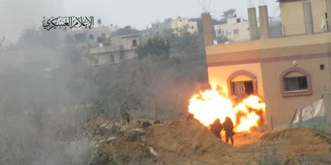 أعلنت كتائب القسام، الجناح العسكري لحركة حماس، تنفيذ كمائن نوعية وتفجير حقول ألغام، ضد قوات الاحتلال الصهيوني، الجمعة، في محاور التوغل في قطاع غزة، وفجّرت المزيد من الدبابات والآليات الصهيونية، وأسقطت طائرة استطلاع إسرائيلية، في حين نفذت سرايا القدس عدة عمليات في إطار التصدي للعدوان.