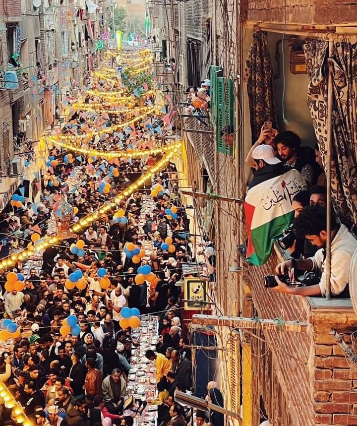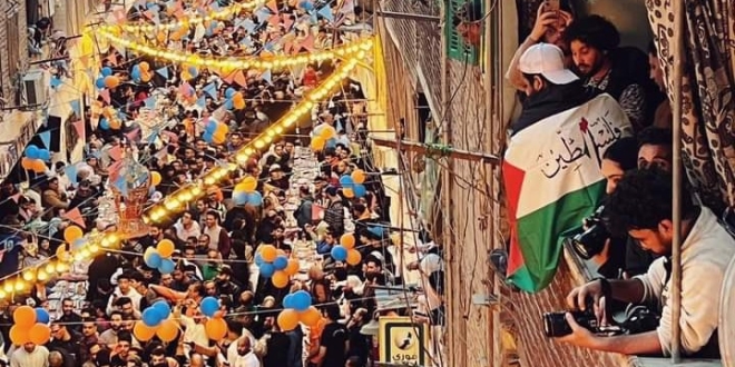وفي القاهرة تحول إفطار جماعي في منطقة المطرية بالعاصمة المصرية، إلى مظاهرة حاشدة نصرة للشعب الفلسطيني.