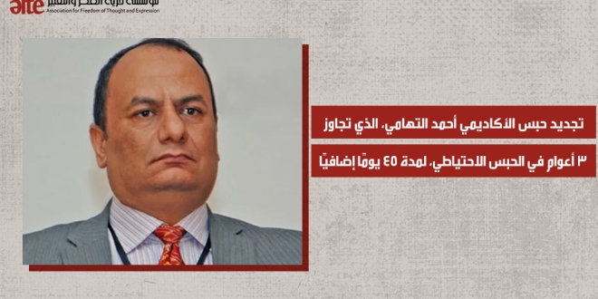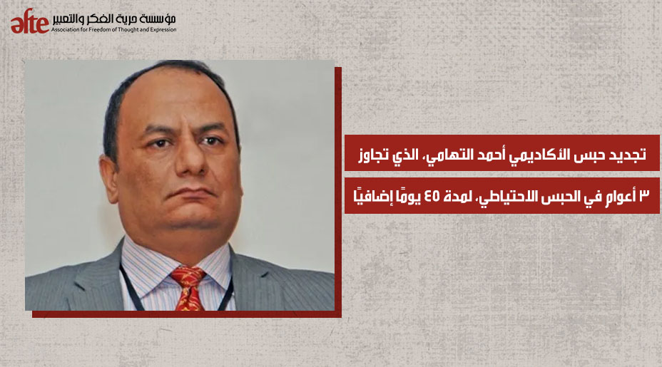 جددت محكمة الجنايات (الدائرة الأولى إرهاب) حبس الأستاذ المساعد العلوم السياسية بكلية الدراسات الاقتصادية والعلوم السياسية بجامعة الإسكندرية، أحمد التهامي، لمدة 45 يومًا، على ذمة تحقيقات القضية رقم 649 لسنة 2020 (حصر أمن الدولة العليا).