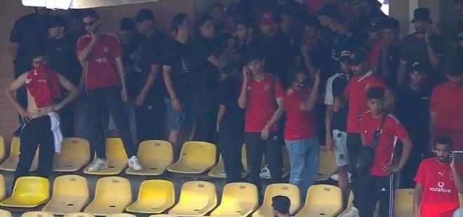 واحتجاجا من جمهور النادي هاجمت الهتافات الغاضبة الجهات الأمنية، بعد اعتقال زميل لهم من قلب المدرجات وغادر بعضهم ستاد برج العرب.