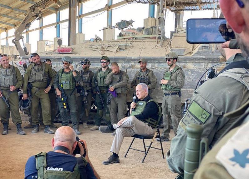 ورصدت كاميرات المواقع الصهيونية وغيرها نتنياهو وهو يضع (رِجلا على رجل) لدى زيارته محور فيلادلفيا على الحدود المصرية، وتحدث لجنوده في الجانب الفلسطيني من معبر رفح البري بحذاء مترب.