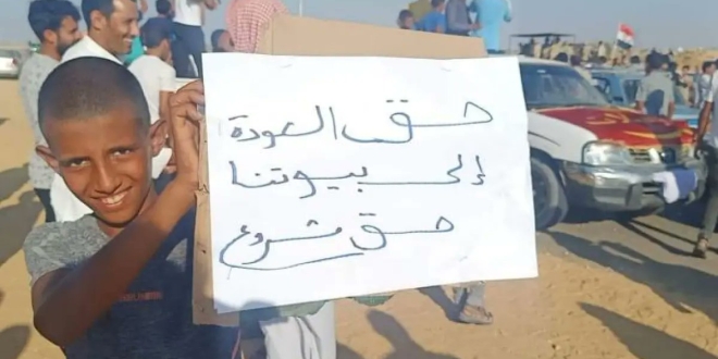 وتظاهر مئات السكان المحليين مطالبين بالعودة لرفح والشيخ زويد عقب سنوات من التهجير القسري، وهم: