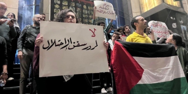 وفي نوفمبر الماضي، نظم عدد من النشطاء وقفة على سلالم نقابة الصحفيين للتنديد بسماح السلطات المصرية برسو السفينة كاثرين في ميناء الإسكندرية، التي يشتبه في حملها “مواد متفجرة كانت في طريقها إلى إسرائيل”، إضافة إلى عبور سفينة حربية إسرائيلية ترفع علمي إسرائيل ومصر، قناة السويس.