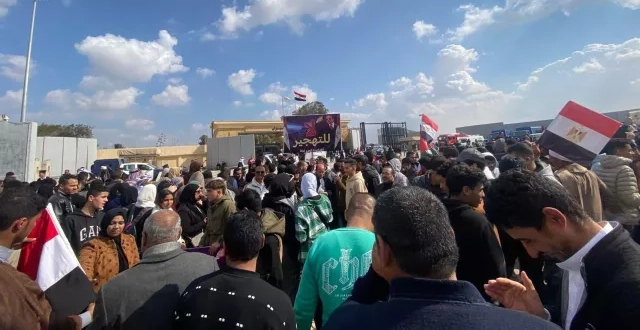 كما عرضت القاهرة الإخبارية لقطات تظهر مئات المحتجين وهم يلوحون بأعلام مصرية وفلسطينية وأردنية بالقرب من معبر رفح الحدودي، وهي منطقة عسكرية تخضع لحراسة، مشددة لا يمكن الوصول إليها إلا بمواكبة رسمية.