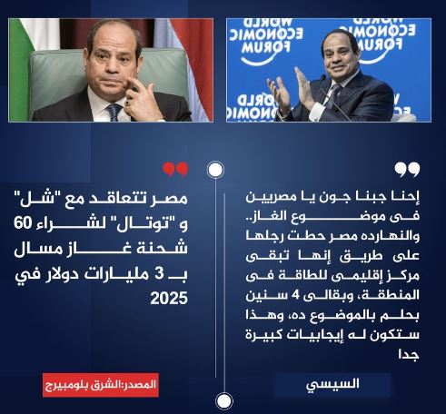 وتعاني مصر من أزمة اقتصادية خانقة، إلا أن السيسي يواصل تحويل البلاد إلى سوق استهلاكي للغاز من كيان العدو الذي أعتبر أن دفع 20 مليار دولار لخزينة وزارة المالية الصهيونية التي يرأسها بتسلئيل سموتريتش بـ”جبنا جون يا مسريين”.