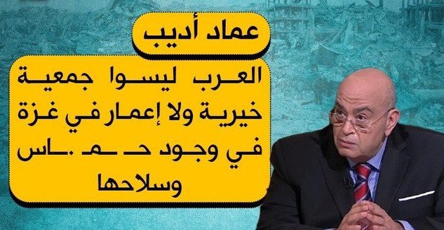 أثارت تصريحات عماد أديب، التي يراها الناشطون والحقوقيون مأجورة، أن العرب ليسوا جمعية خيرية، والتعمير في غــزة مرتبط بأن يكون لنا كلمة سياسية في مستقبل القطاع، ولا إعمار في غــزة في وجود حـمــاس وسلاحها، وإذا رفضت فعليها أن توفر 65 مليار دولار للإعمار، ردود فعل عنيفة من نشطاء ومراقبين وشخصيات عامة.