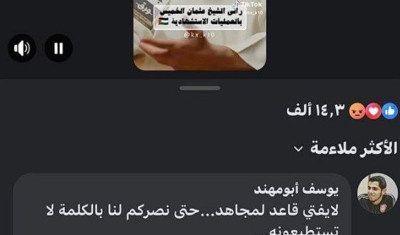 وأردف، “كان أبو مهند -تقبله الله- عينه تراقب هذا العبث، وتسعى لكسر هذا الصلف، ولما دُعي للانتصار للنبي ﷺ خرج ولم يلتفت، يصرخ في أُذن الدنيا: نحن الذين بايعوا محمداً على الجهاد ما بقينا أبداً، خيبر خيبر يا يهود جندُ محمد بدأ يعود.”.