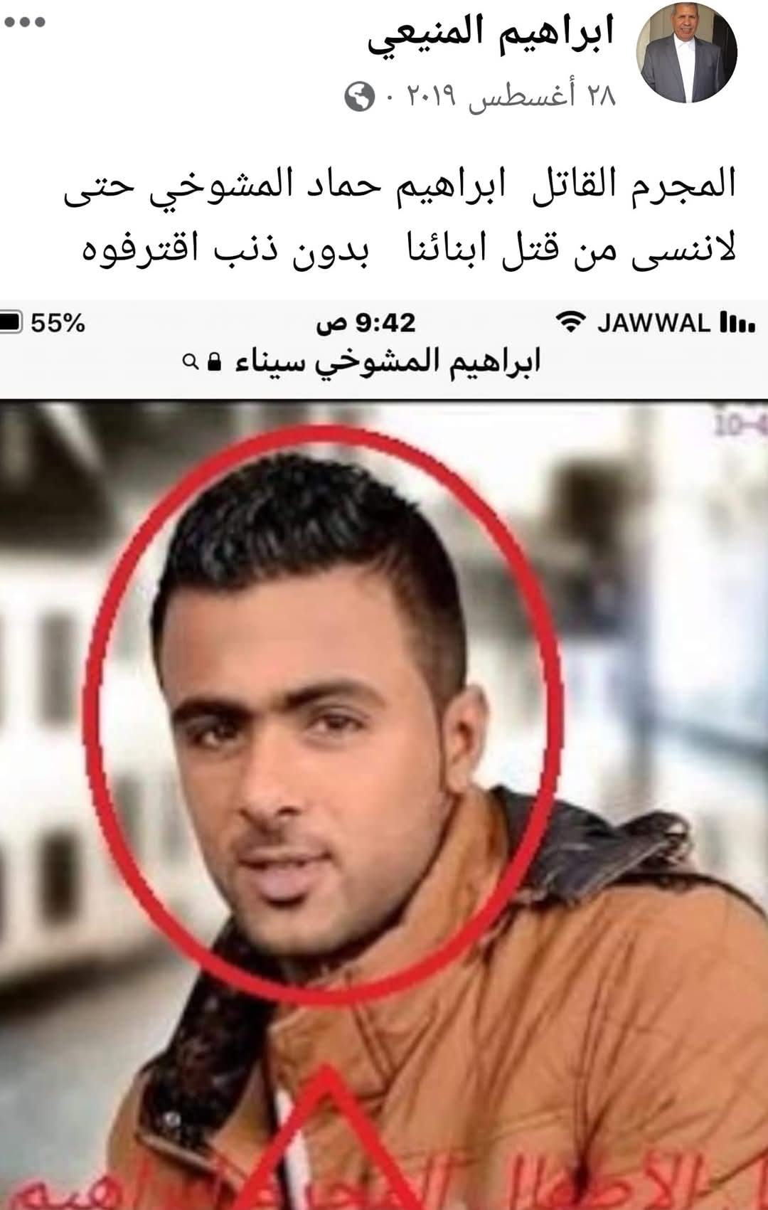 خلال فعاليات الاحتفال بيوم الشهيد، كرّم المنقلب الدموي عبدالفتاح السيسي إبراهيم حماد إبراهيم حماد بعد وفاته، الذي كان عضوا بالمليشيا المحلية الفرقة 103 التي شكلها الجيش، ووثقت هيومن رايتس ووتش بفيديوهات تنفيذه إعدامات ميدانية لمواطنين عزل منهم داود العوابدة 16 عاما.
