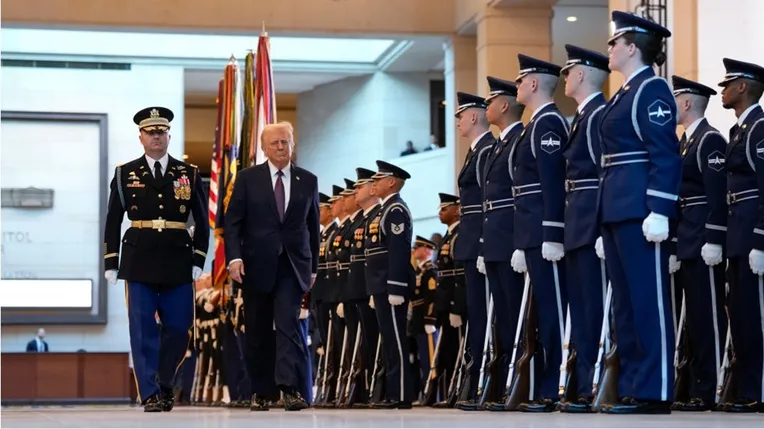وشدد ترامب، على أنه “لن تمنع أي قوة إرهابية السفن التجارية والبحرية الأمريكية من الإبحار بحرية في الممرات المائية العالمية”.