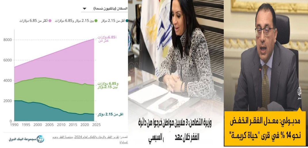 كما زعمت وزيرة التضامن الاجتماعي في أبريل الماضي أن "3 ملايين مواطن خرجوا من دائرة الفقر في عهد السيسي".