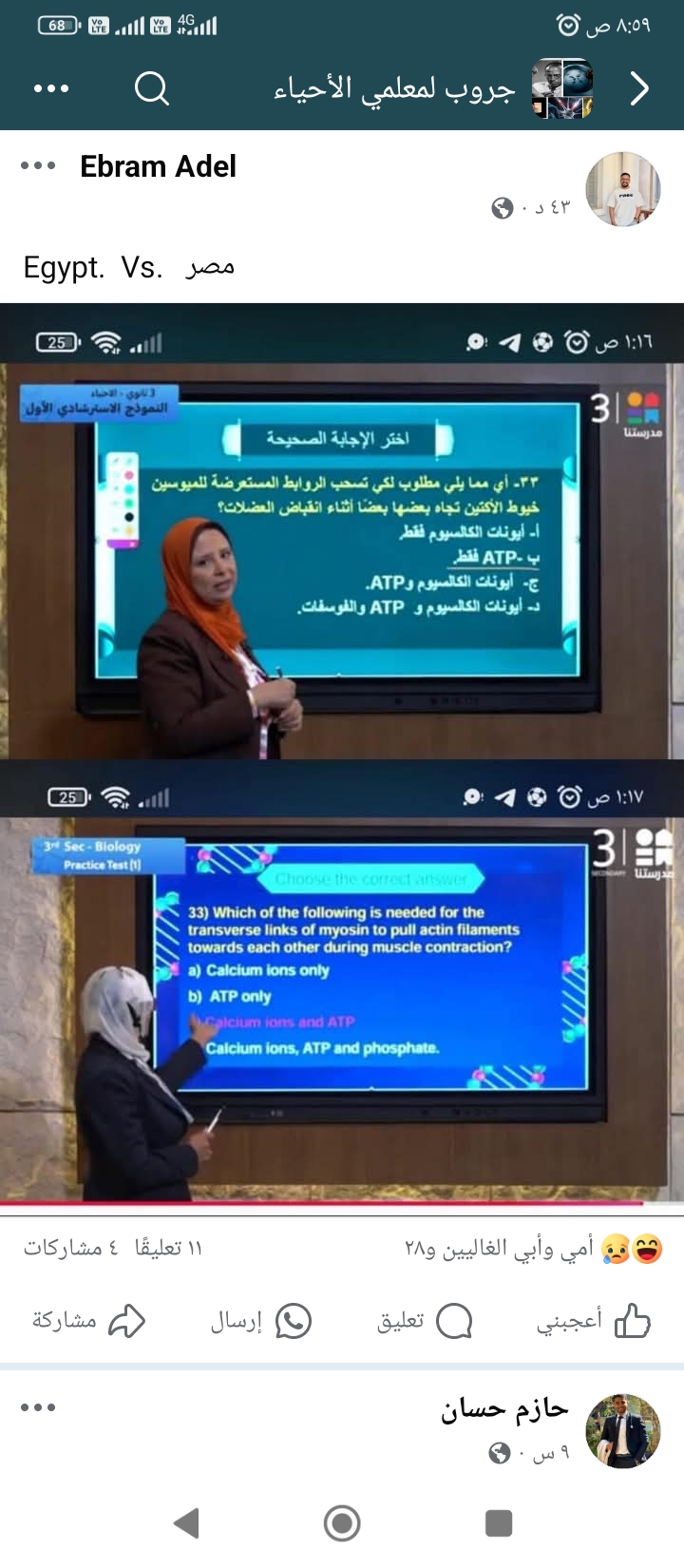 ومما زاد من غضب معلمي الأحياء هو رد معلمة مادة الأحياء باللغة العربية بقناة مدرستنا وتبريرها للخطأ "إنها مستلمة نموذج الإجابة من الوزارة".