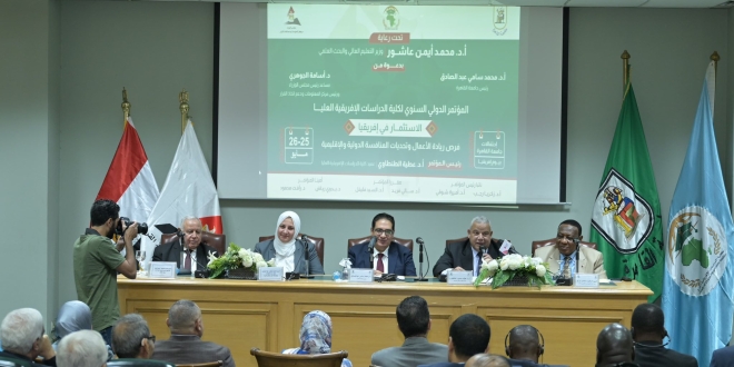 احتفالا من كلية الدراسات الأفريقية العليا بيوم أفريقيا 63، نظمت مؤتمرا على مدى يومي 25 و26 مايو الجاري، بمشاركة 84 مشاركا ببحوث انتظمت فى سبع جلسات علمية على يومين، بحضور ا.د. السيد فليفل عميد الكلية الأسبق ومقرر المؤتمر ، والسفير محمدو لبرنغ عميد السلك الدبلوماسى الافريقى بالقاهرة حذر فيه الباحثون من تعرض مصر لأزمة مياه عميقة تهددها جراء نقص مياه نهر النيل محذرين من تضاؤل قدرتها على تلبية احتياجات مواطنيها من مياه الشرب والغذاء خلال السنوات القليلة القادمة.