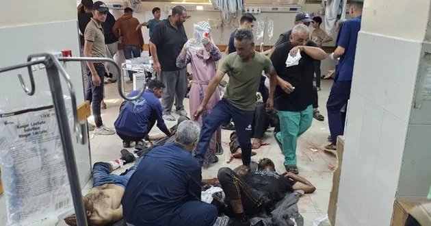 ولفتت إلى أن الطواقم الطبية تعمل ضمن أرصدة محدودة من الأدوية والمهام الطبية المنقذِة للحياة، فيما اكتظت أرضية المستشفى بالمصابين في كل مكان.