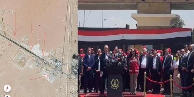 مشهد تمثيلي يشارك فيه بدر عبد العاطي وزير خارجية السيسي وبعض أعضاء حكومته، ومحمد مصطفى وزير خارجية محمود عباس قائد شرطة رام الله التابعة للاحتلال، يتسابقان في هذا المشهد بالثناء على جهود كليهما في محاولة الوصول بالمساعدات لمعبر رفح.