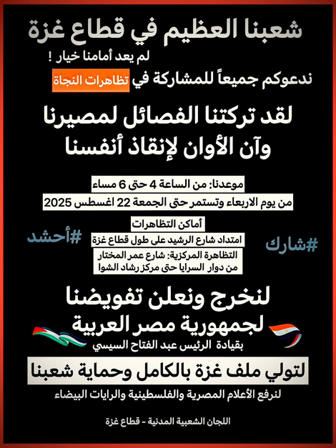 وجاء ذلك التحرك مع الدعاية برفض حكومة السيسي استمرار الجرائم الإسرائيلية داخل قطاع غزة وعرقلة نفاذ المساعدات ما أدى إلى تدهور كارثي غير مسبوق للوضع الإنساني في غزة بحسب ما قاله بدر عبدالعاطي وزير خارجية السيسي الثلاثاء 26 أغسطس.
