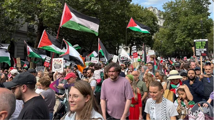 كان مشهد أكثر من 300 ألف متظاهر في قلب لندن بمثابة رسالة صارخة إلى الحكومة البريطانية والعالم: شعب بريطانيا يقف مع غزة، يقف مع فلسطين، ولن يتراجع حتى تتحقق الحرية والعدالة.