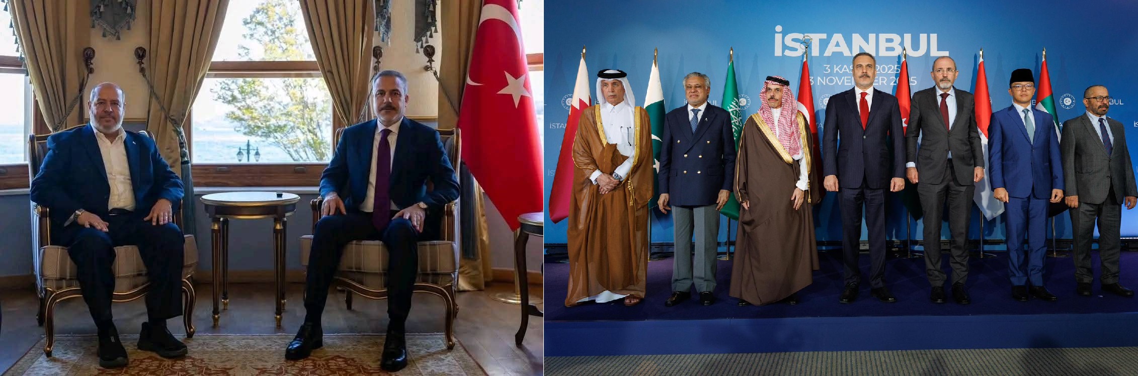 وفي اجتماع وزاري في إسطنبول (4 نوفمبر 2025) استضافت تركيا ممثلي خارجية دول؛ السعودية، والأردن، وقطر، والإمارات، وباكستان، وإندونيسيا لبحث ترتيبات ما بعد وقف إطلاق النار في غزة، وتثبيت السلام، ورفض أي وصاية خارجية على القطاع.