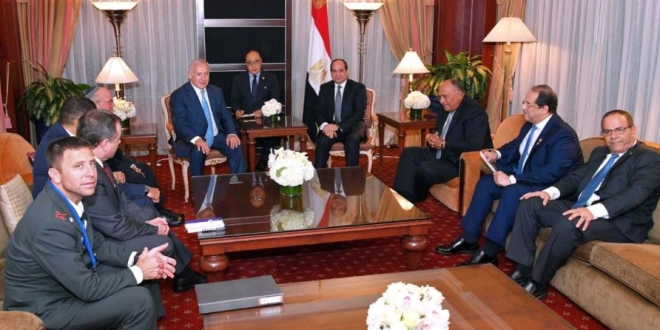 وعلى مستوى العلاقات الدولية، ظهر السيسي بالفعل في لقاءات علنية مع رئيس وزراء الكيان الصهيوني بنيامين نتنياهو، هاشا باشا، منها لقاء في نيويورك على هامش اجتماعات الجمعية العامة للأمم المتحدة عام 2017، وأخرى في مناسبات مختلفة.