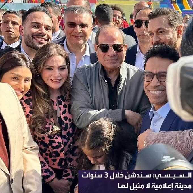 وعد المنقلب السفيه عبدالفتاح السيسي بمزيد من الإنجازات هدية للشعب ومكافأة على تحمله وصبره وفقره وحبه لوطنه ووضع بناء الوطن صوب عينيه قبل كل شيء وأهم من أي شيء وأولى، من القلب للقلب بمدينة إعلام جديدة أكبر وأكبر وأغلى وأكبر مدينة في الكون، المجرة، المجموعة، الكوكب، الشرق والغرب والشمال والجنوب وفوق وتحت وموسوعة جينيس لا تجامل ولا ترتشي (بياخدوا ويقبلوا هدايا فرعونية حين الضغط عليهم وإحراجهم) .