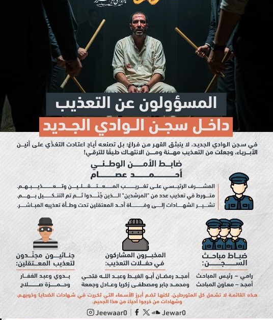 قالت منصة جوار الحقوقية: إن "إدارة سجن الوادي الجديد ضغطت تحت التهديدات والتعنيف، لإجبار معتقلي عنبر 8 على إنهاء إضرابهم، وصولًا إلى استخدام القوة المباشرة ضدهم".