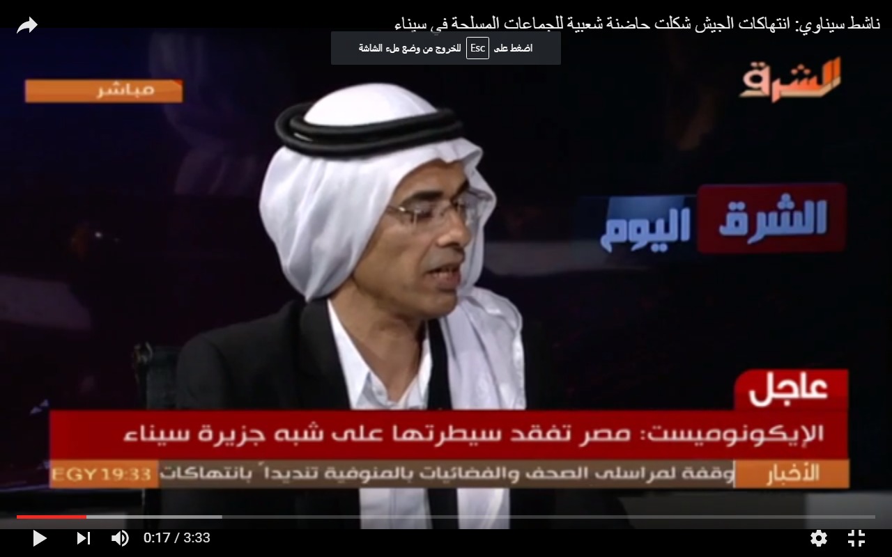 وأضاف "الأخرسي"- في حواره لبرنامج "الشرق اليوم" على قناة الشرق- أن تنظيم الدولة في سيناء يسيطر على أماكن كثيرة، ويمنع الإمدادات التي تذهب إلى الأكمنة المسلحة التابعة للجيش المصري، والجيش يستعين بطائرات تابعة للكيان الصهيوني لفشله في التعامل مع هذه القضية.