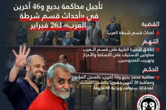 السجن 6 أشهر لـ16 شرقاويا وبراءة11 آخرين وتأجيل نقض أحكام هزلية العدوة