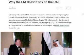 في تقرير نشرته اليوم الاثنين شبكة "رويترز" للأنباء، تحت عنوان "لماذا لا تتجسس المخابرات المركزية الأمريكية (CIA) على الإمارات"، قال الصحفي "آرام روستون": إن الإمارات التي تقوم بأدوار ...