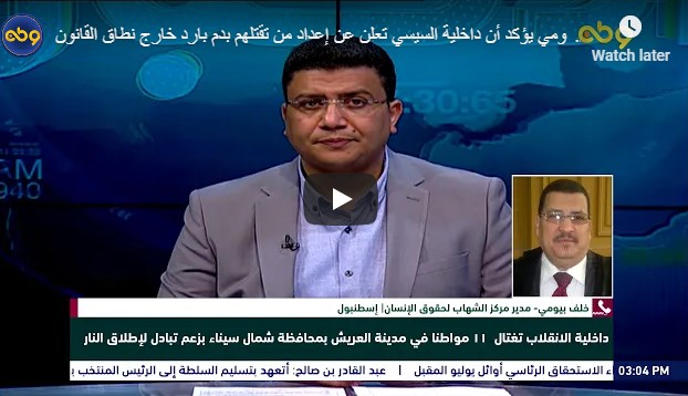 أعلنت داخلية الانقلاب عن اغتيال 11 مواطنًا في مدينة العريش بمحافظة شمال سيناء، بزعم تبادلٍ لإطلاق النار. وقالت الداخلية- في بيان لها- إنها قتلت المواطنين بمنطقة أبو عيطة ...
