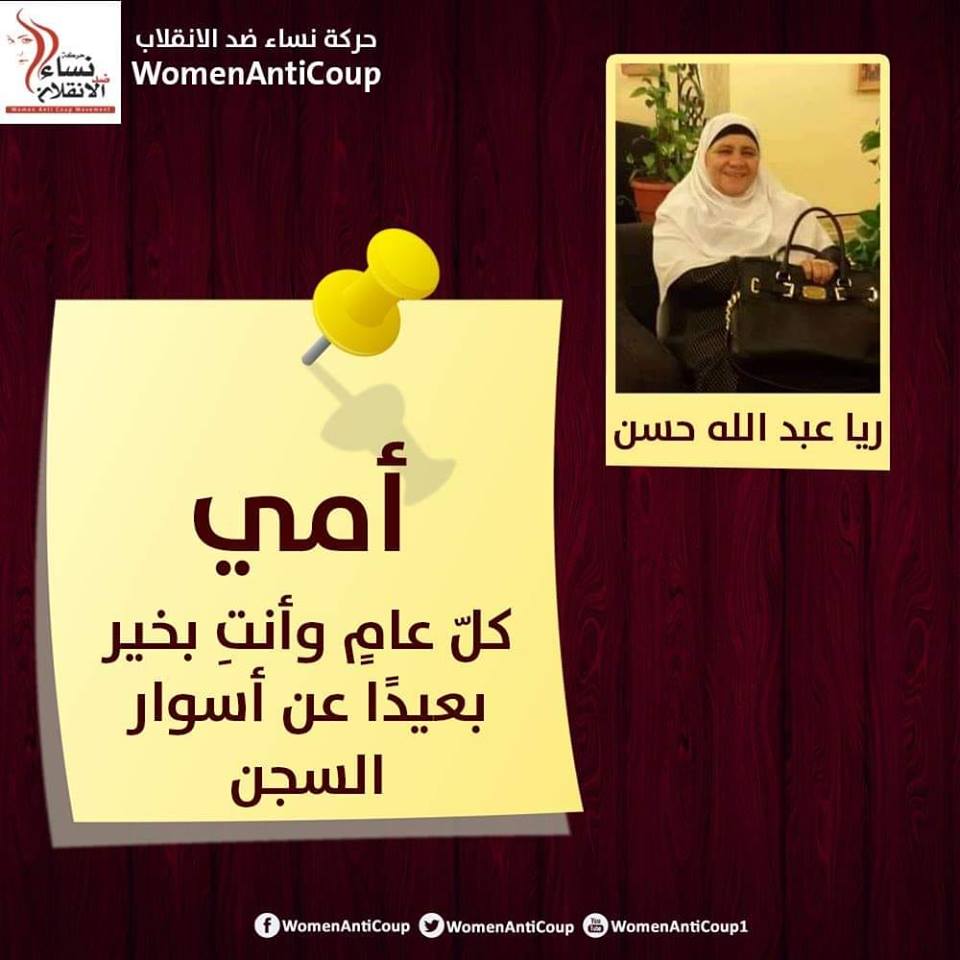 أطلقت حركة “نساء ضد الانقلاب” حملة للتعريف بالنساء المعتقلات في سجون الانقلاب العسكري بعنوان “وحشتينى يا ماما” بالتزامن مع عيد الأم. ومن بين المعتقلات “ريا عبد الله حسن ...