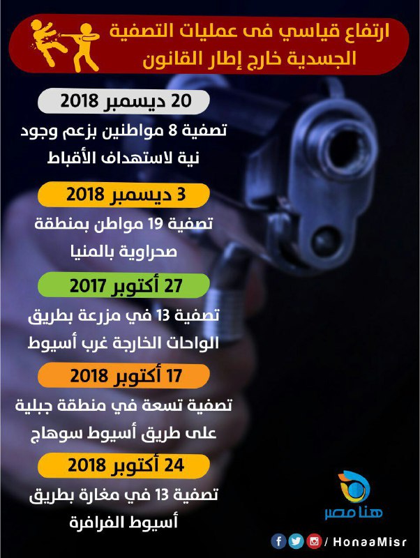 إنفوجراف| مقتل 130 مصريًّا خارج القانون خلال نوفمبر وديسمبر