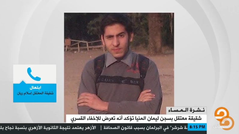 روت ابتهال شقيقة المعتقل إسلام ريان تفاصيل اختفائه من محبسه بسجن المنيا الجديد. وقالت شقيقة إسلام في مداخلة هاتفية لقناة مكملين إن سلطات الانقلاب رحلت شقيقها من ليمان ...