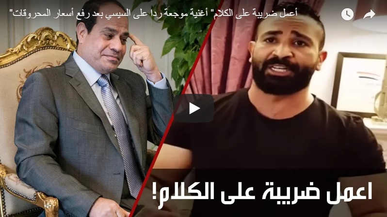 تداول نشطاء على مواقع التواصل الاجتماعي أغنية “اعمل ضريبة على الكلام”، للفنان “أحمد سعد”؛ ردًّا على قرارات حكومة الانقلاب برفع أسعار الوقود. وتقول كلمات الأغنية “اعمل ضريبة على ...