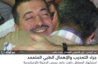 استشهد المعتقل رأفت حامد (58 سنة) من منطقة المندرة بالإسكندرية داخل قسم شرطة الدخيلة جراء التعذيب والإهمال الطبي المتعمد. وكشفت مصادر حقوقية عن أن حامد اعتقل من داخل منزله ...