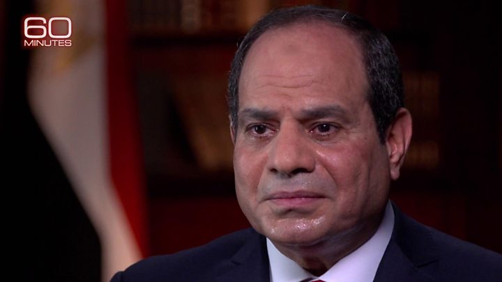 اضطراب في النبض..سرعة في التنفس..ارتفاع في الضغط..عرق يتفصد من الجسم، مظاهر وأعراض ظهرت على وجه السفيه قائد الانقلاب، عبد الفتاح السيسي، أثناء حوار مع قناة سي بي إس ...