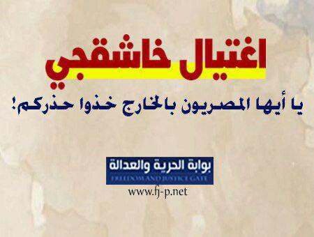 بعد قيام السلطات السعودية باغتيال الصحفي السعودى جمال خاشقجي ،يحتم على المصريين أخذ حذرهم ،خوفا من قيام نظام السيسي بأى محاولات مشابهة خاصة مع تدوال الأنباء عن تورط ...