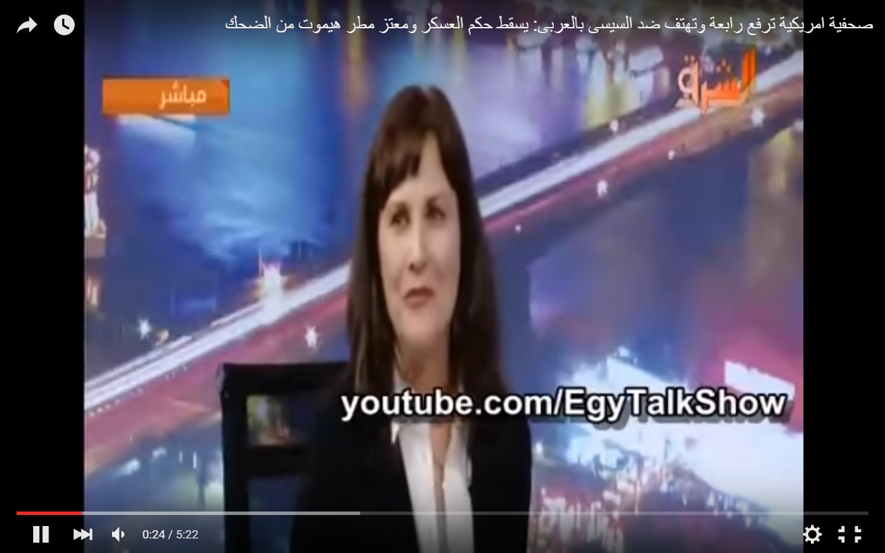 بكار النوبي أكدت ميسي كرتشفيلد، الصحفية الحقوقية الأمريكية ورئيس تحرير مجلة "بي مجازين"، أن ما فعله السيسي انقلاب ملوث بالدماء ويجب عليه أن يرحل!. جاء ذلك خلال استضافتها ...