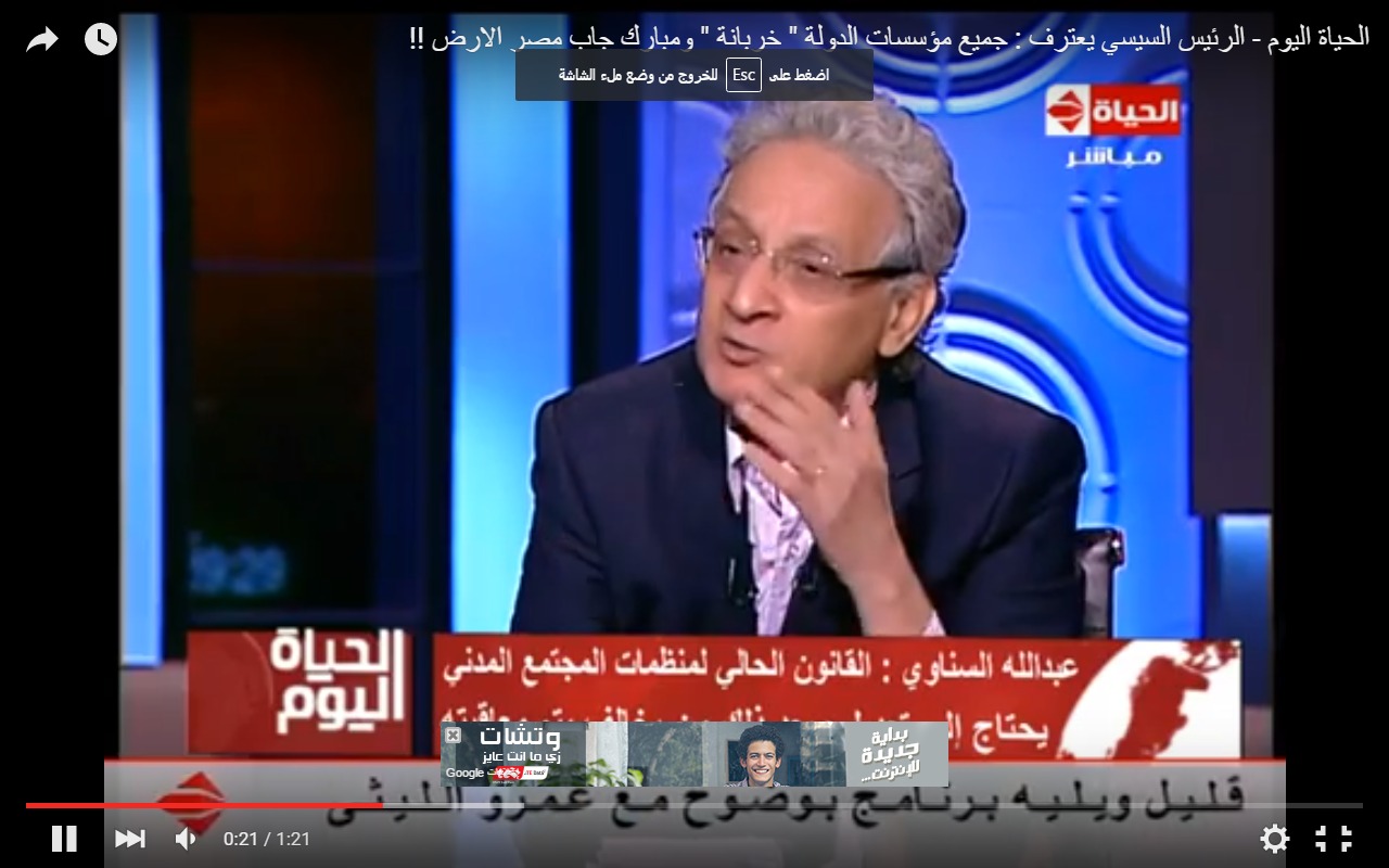 بكار النوبي قال الكاتب الصحفي عبد الله السناوي: إن عبد الفتاح السيسي اعترف في لقائه بالمثقفين، الثلاثاء، بأن «مؤسسات الدولة المصرية خربانة، ومبارك جابها الأرض»، وأنه يخشى من ...