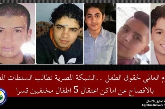 بالتزامن مع اليوم العالمي لحقوق الطفل،  طالبت الشبكة المصرية سلطات نظام السيسي المنقلب  بالإفصاح عن أماكن اعتقال 5 أطفال مختفيين قسرا واحترام حقوق الطفل والاتفاقية المتعلقة بها ، ...