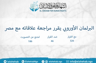 تبنى البرلمان الأوروبي قرارا بمراجعة علاقات الاتحاد الأوروبي مع مصر في ضوء أوضاع حقوق الإنسان المتدهورة، بأغلبية 326 نائبا، وامتنع عن التصويت 186 نائبا، وصوت ضد القرار 46 ...