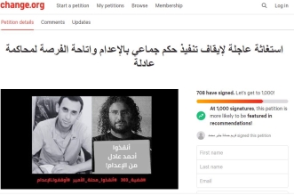 أطلق ناشطون (أغلبهم من غير الإسلاميين) على موقع (change.org) حملة استغاثة عاجلة لإيقاف تنفيذ حكم جماعي بالإعدام وإتاحة الفرصة لمحاكمة عادلة، معتبرين أن الأكثر خطورة هو إصدار محاكم أمن دولة ...